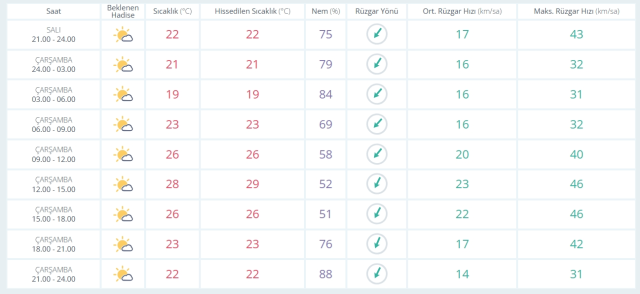 Meteoroloji Genel Müdürlüğü tarafından saat saat İstanbul’da hava nasıl olacak? İşte saatlik hava varsayım raporu: