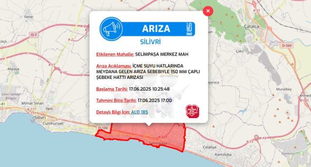 Arıza Açıklaması: İÇME SUYU SINIRLARINDA MEYDANA GELEN ARIZA SEBEBIYLE 150 MM ÇAPLI ŞEBEKE SINIRI ARIZASI