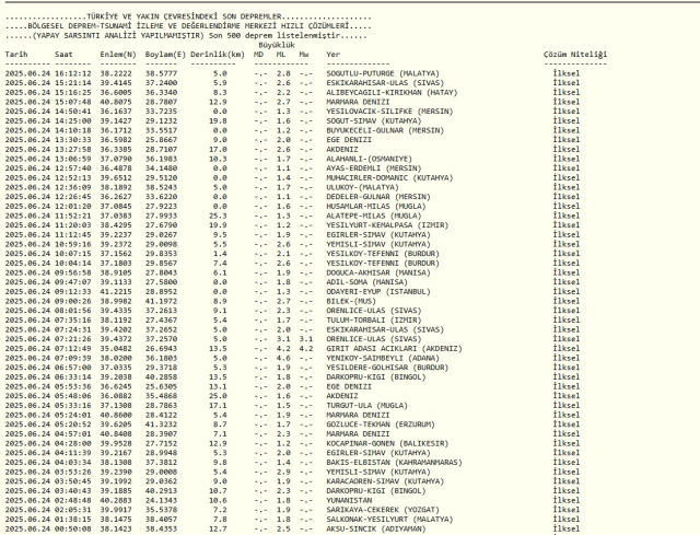 İSTANBUL’DA ZELZELE Mİ OLDU? 24 Haziran 2025 az evvel zelzele mi oldu, nerede, kaç şiddetinde? AFAD ve Kandilli Rasathanesi SON sarsıntılar listesi!
